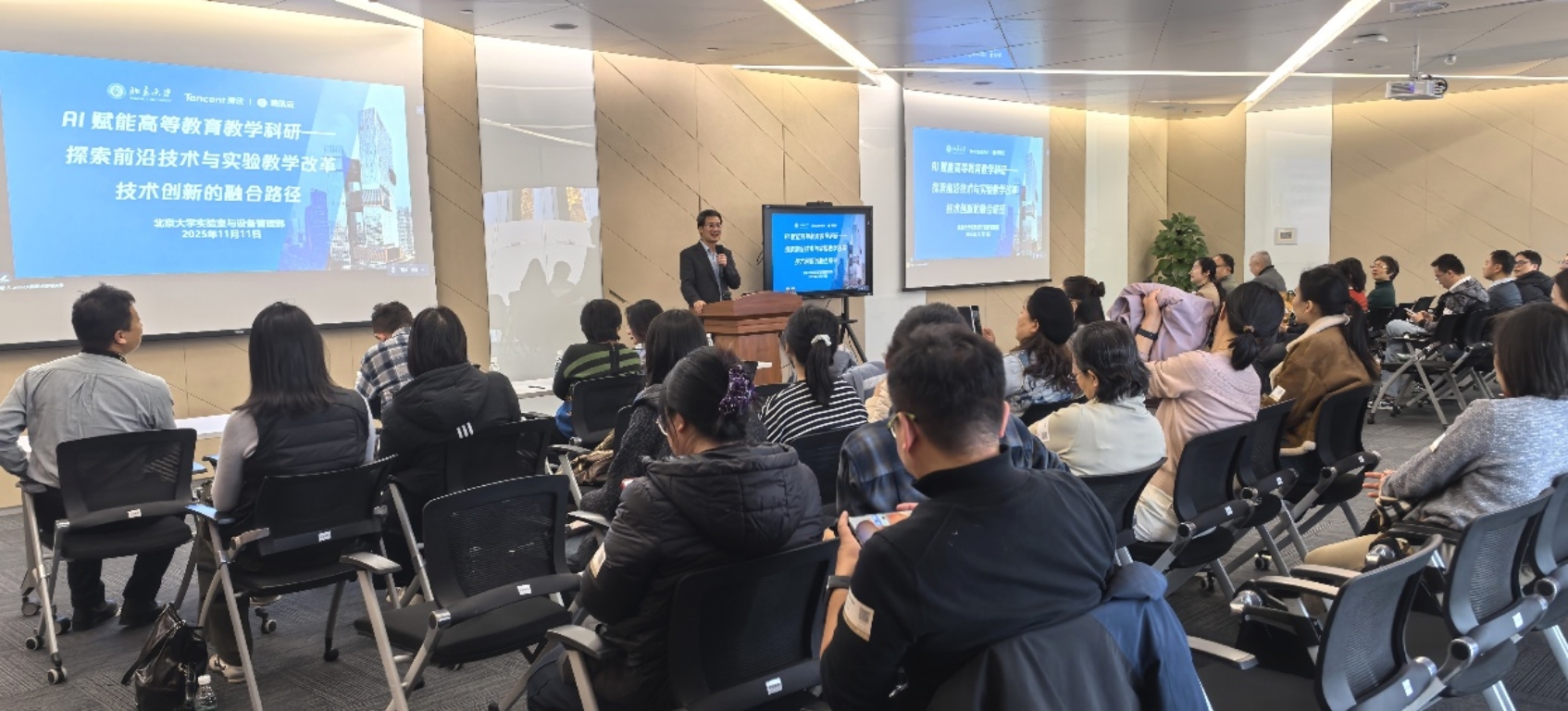 互动研讨环节,老师们结合学校工作实际,围绕AI技术赋能北京大学的实验教学改革、科学研究技术支持、实验室管理等实际问题,与腾讯技术团队展开了热烈交流讨论。